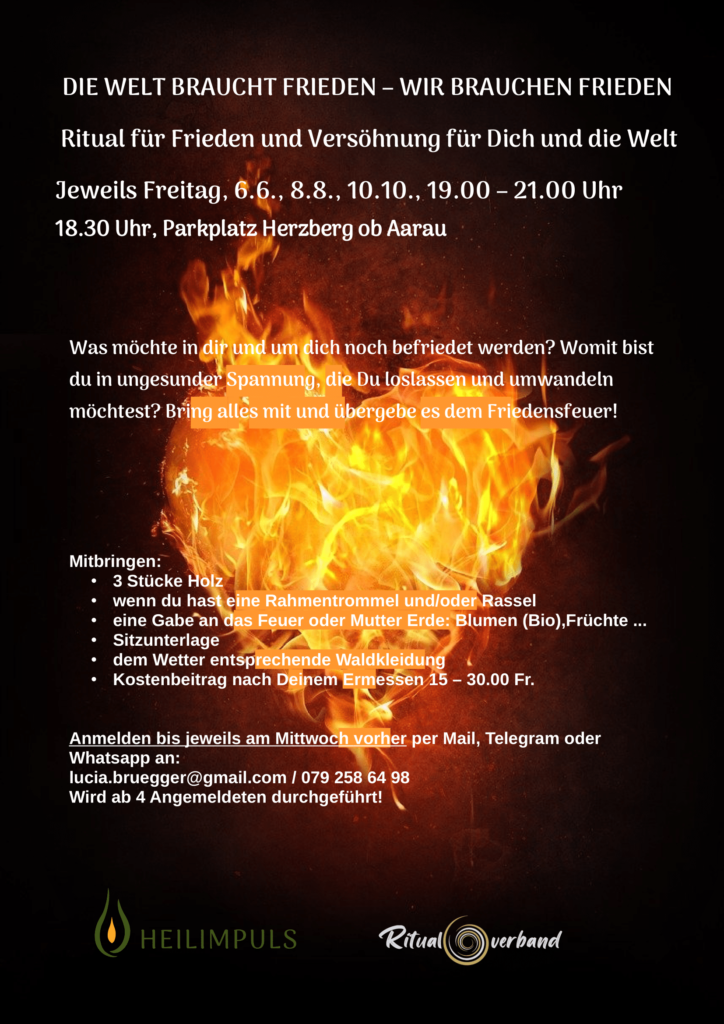 Was möchte in dir und um dich noch befriedet werden? Womit bist du in ungesunder Spannung, die Du loslassen und umwandeln möchtest? Bring alles mit und übergebe es dem Friedensfeuer!